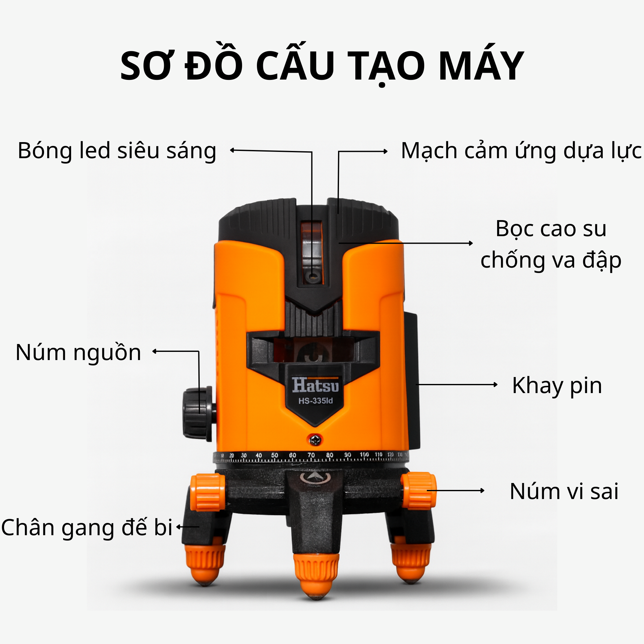 HATSU HS 335LD – Số Tia Laser: 04 Tia đứng, 01 Tia ngang, 01 Tia dọi tâm.