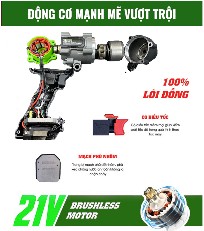 – Motor ruột đồng 100% + Động cơ không chổi than siêu mạnh mẽ