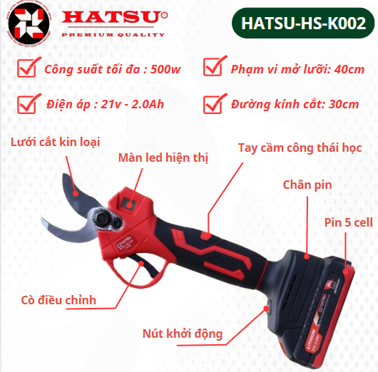 Máy cắt tỉa cành dùng pin Hatsu , kéo cắt cành cây động cơ không chổi than siêu khỏe cho nghề làm vườn cây cảnh