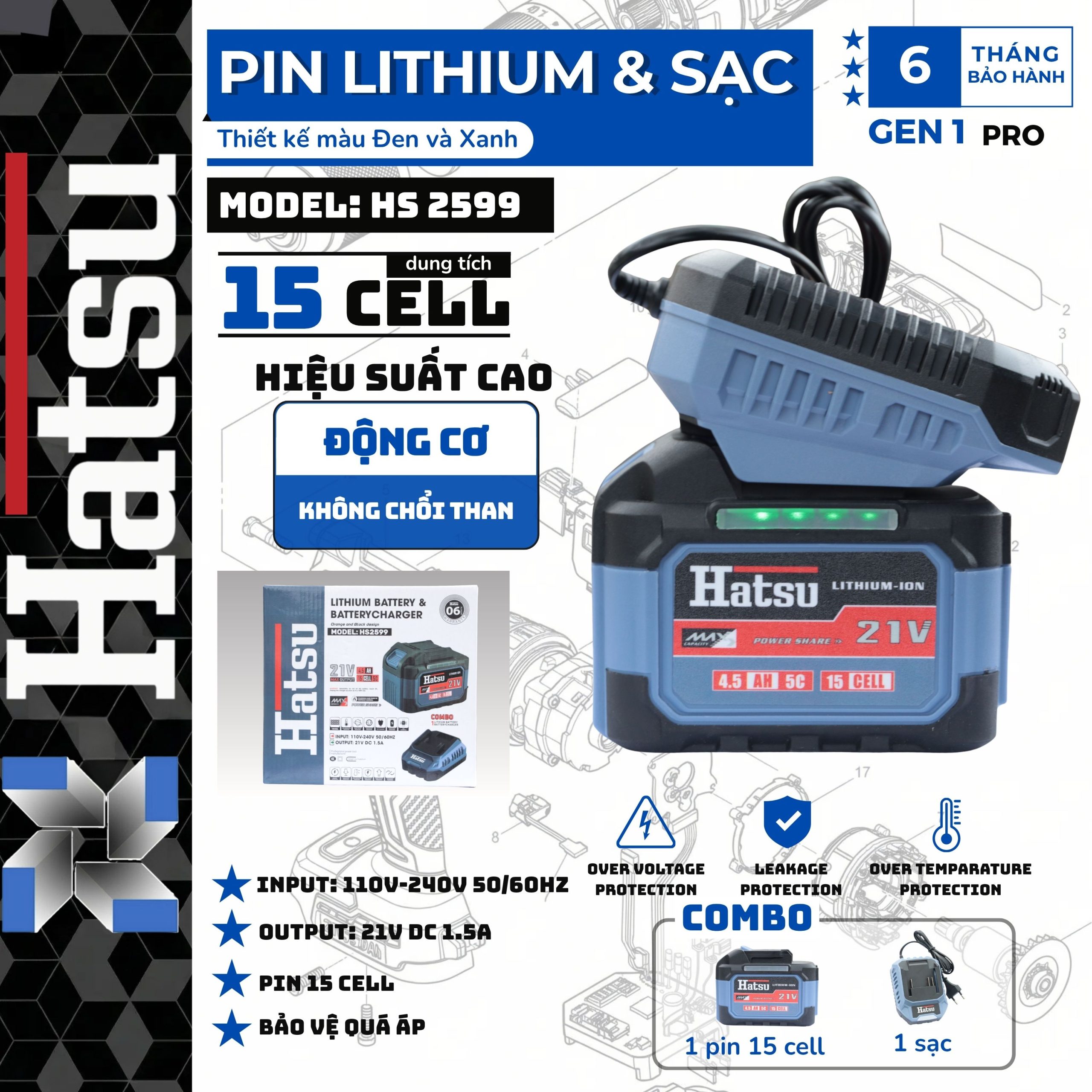 – 01 Bộ sạc pin HATSU chính hãng